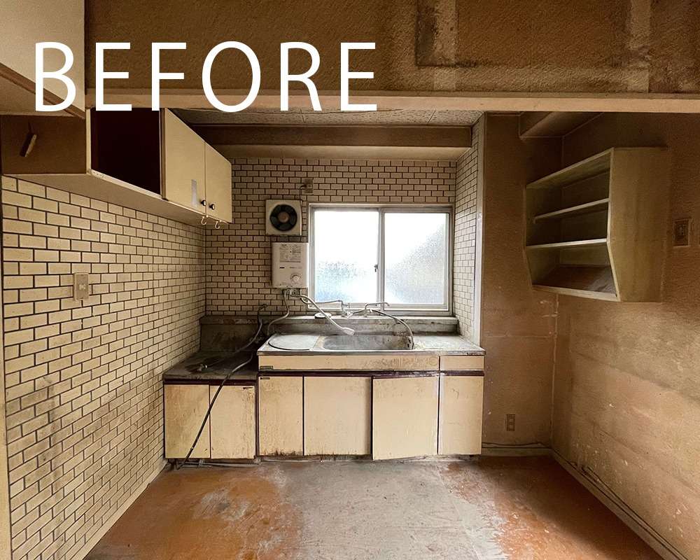 元々事務所として使われていた為、浴室や脱衣室の無い間取りだったのをフルリノベで居住空間に生まれ変わりました。
