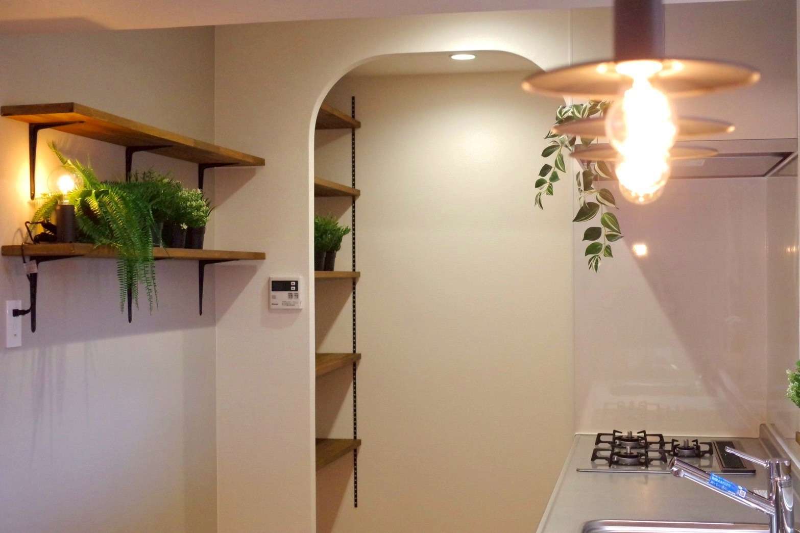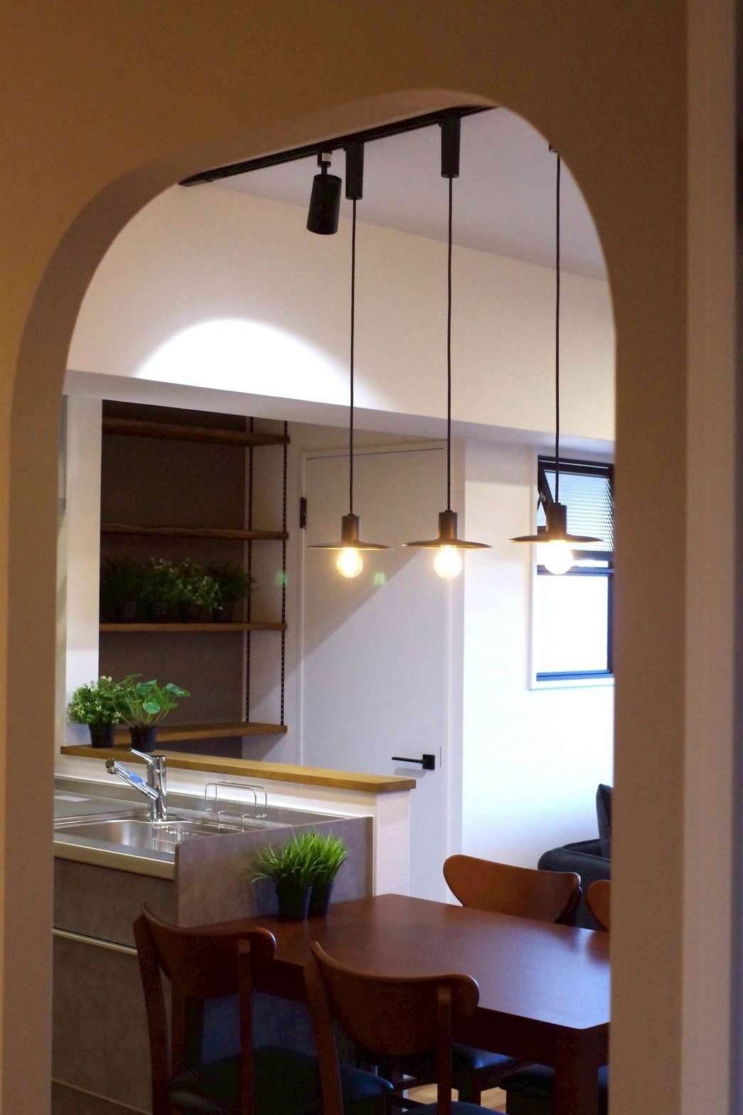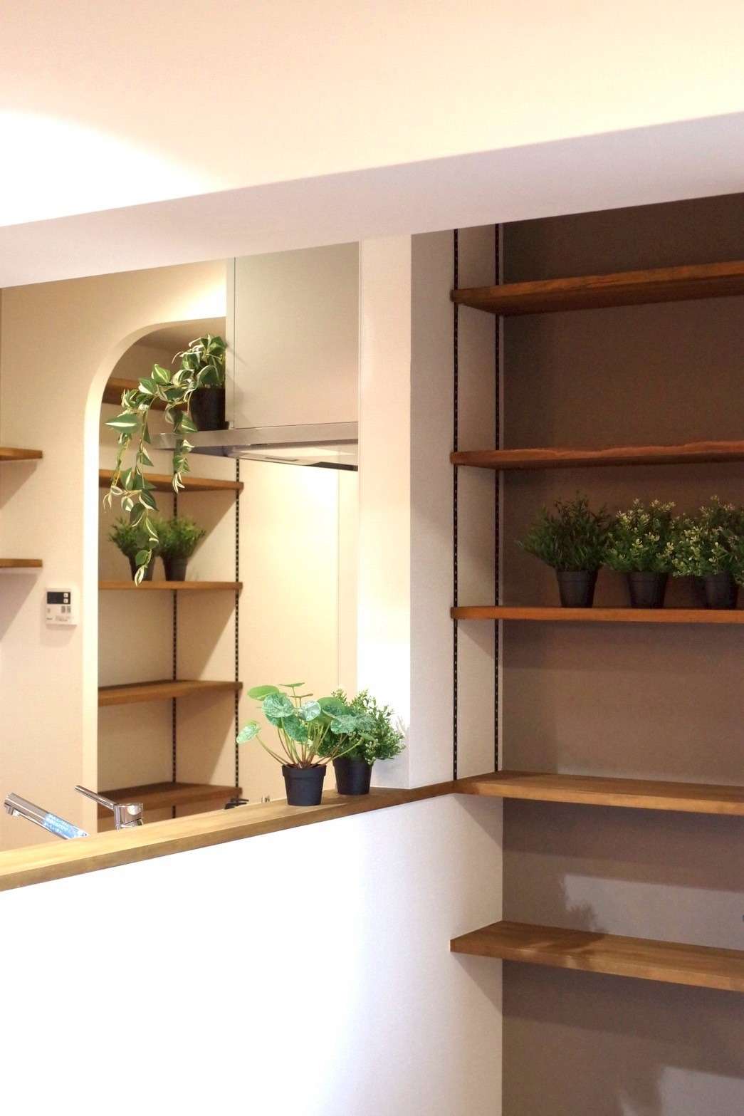 直線的な空間に柔らかな曲線を取り入れることで、優しく温かみのある印象を与えてくれるアーチ。