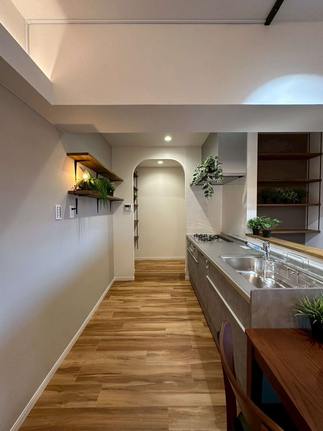 アーチの垂れ壁をポイントにしたリノベーションマンション。