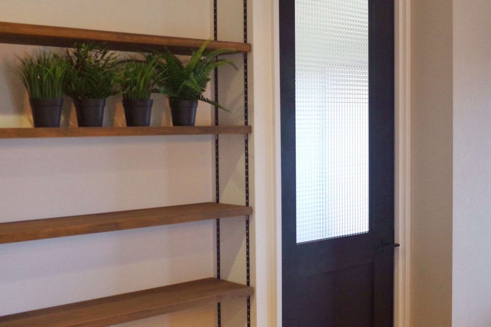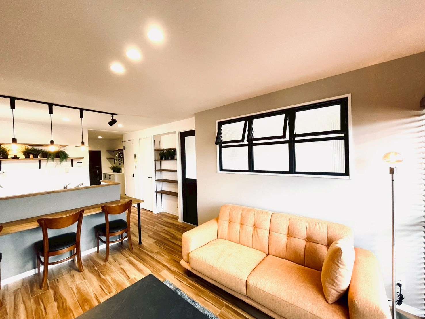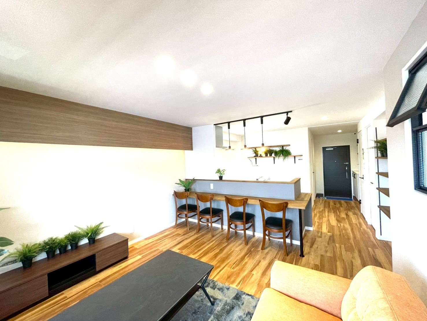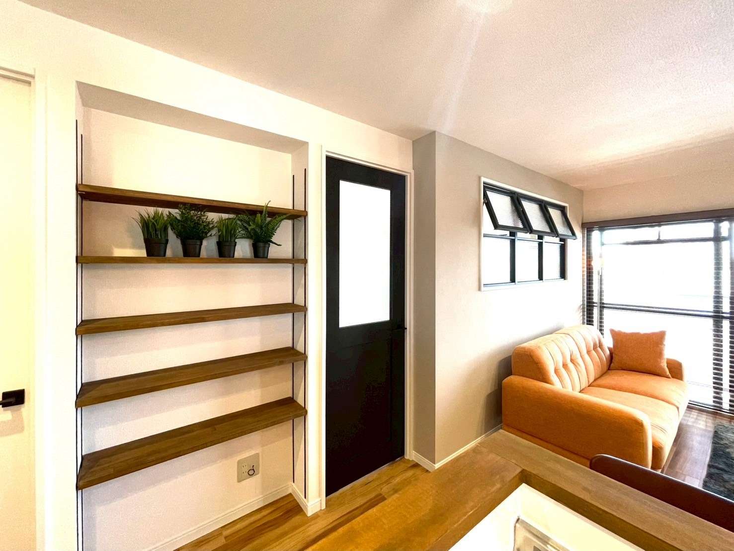 定額制リノベーションでの設計で予算が限られていながらも、デコマドやデザイン性のある室内ドア、収納に便利な可動棚など、部屋をアップグレードさせるセンスあるアイテム豊富なつくり。