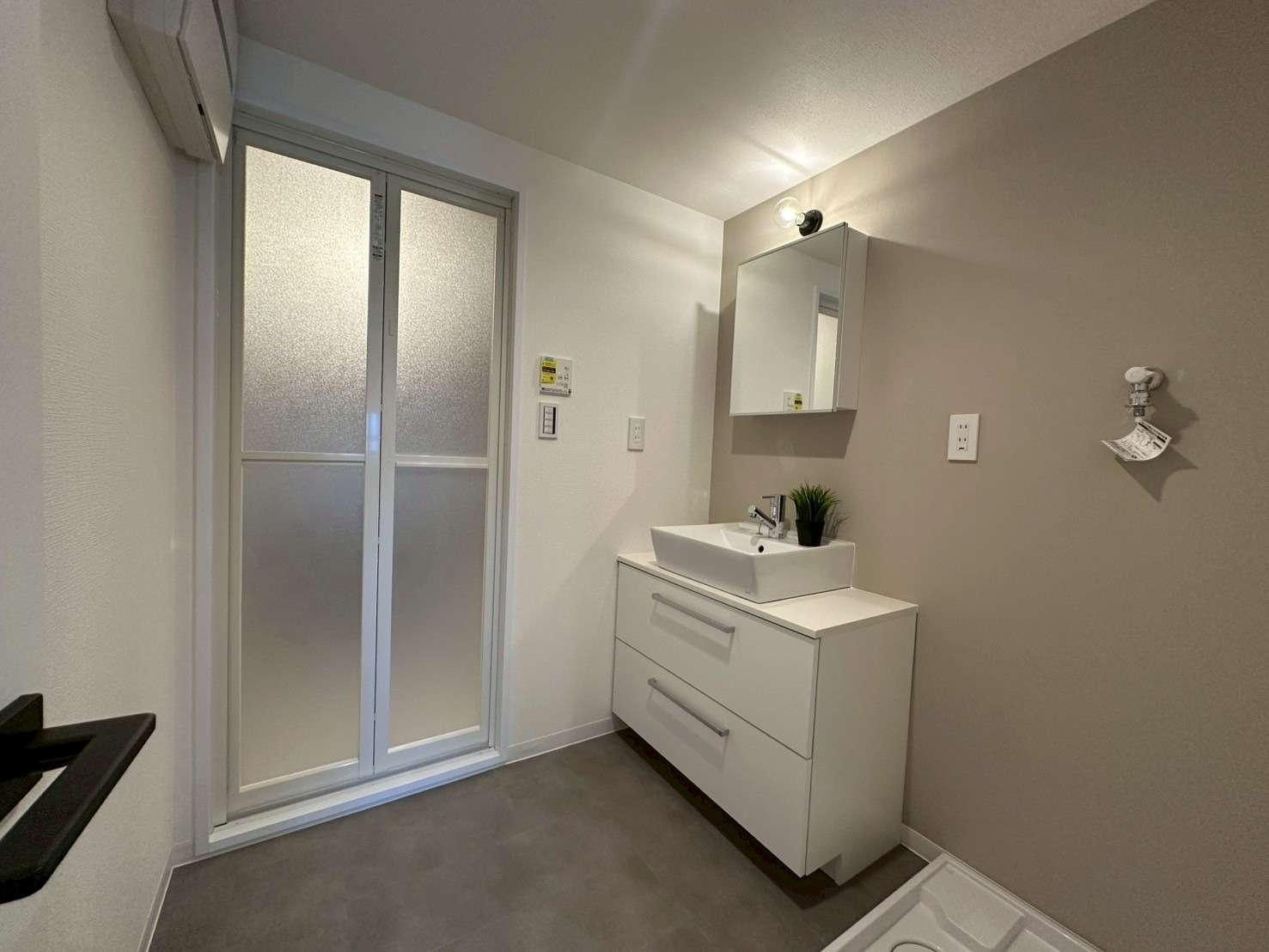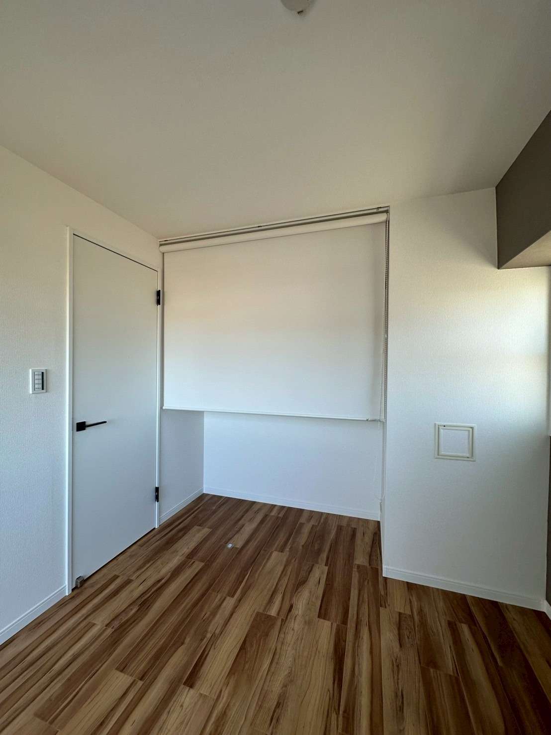 今回は個室のひと部屋にある収納スペースに扉をつけずロールスクリーンを導入。