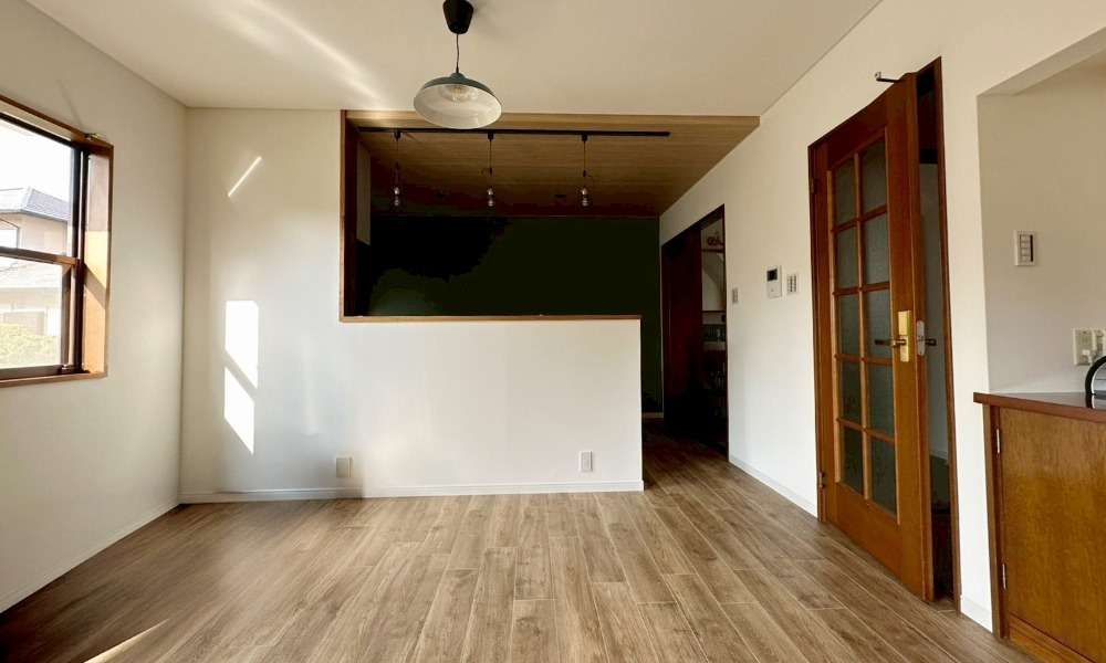 築年数を感じさせない、洗練された「モダン×北欧」のエッセンスを取り入れた全面リノベーション。無垢の質感を活かしたフローリングと、各部屋ごとにテーマを変えたアクセントクロスが、住まう人の個性を彩ります。
