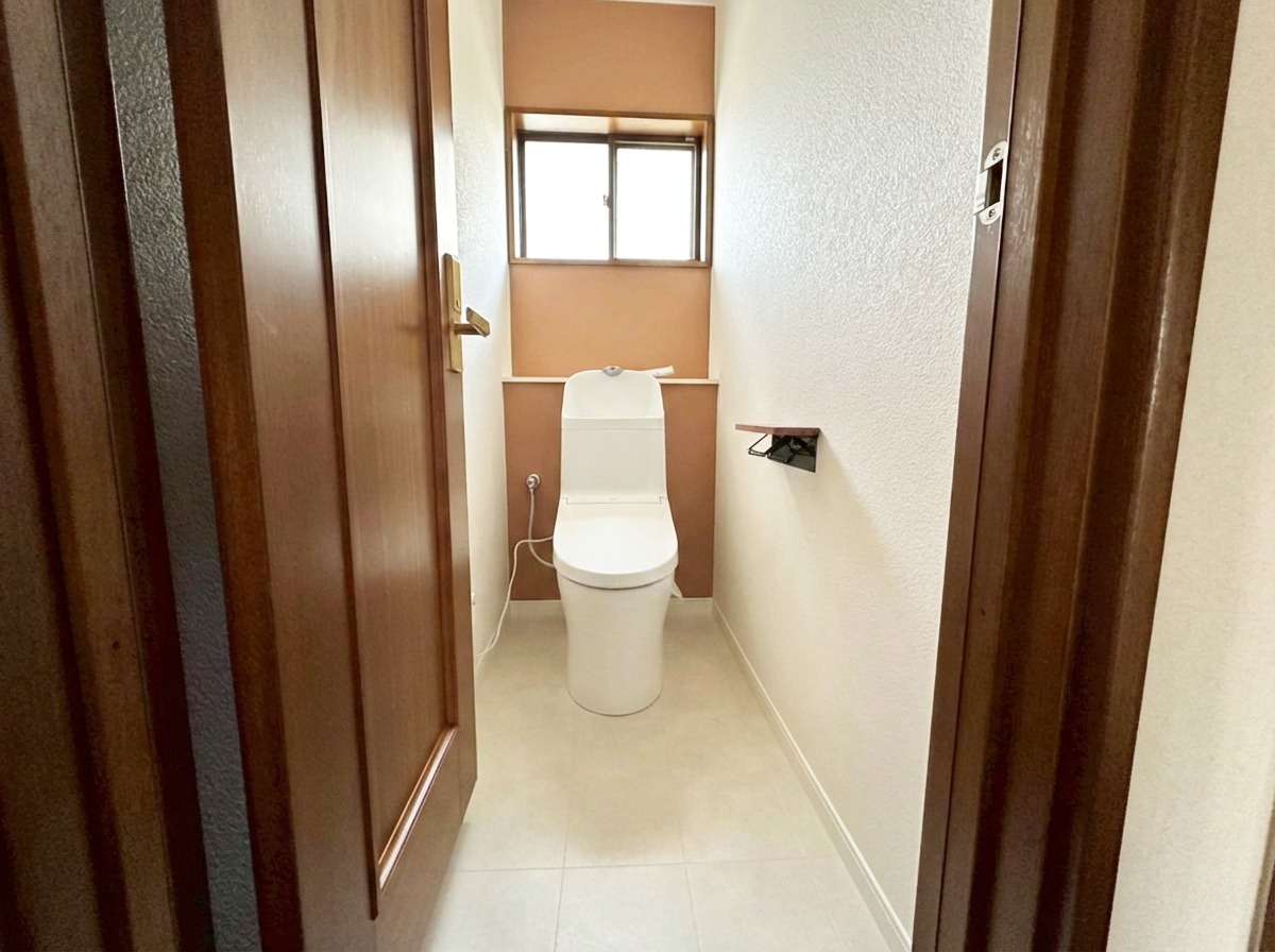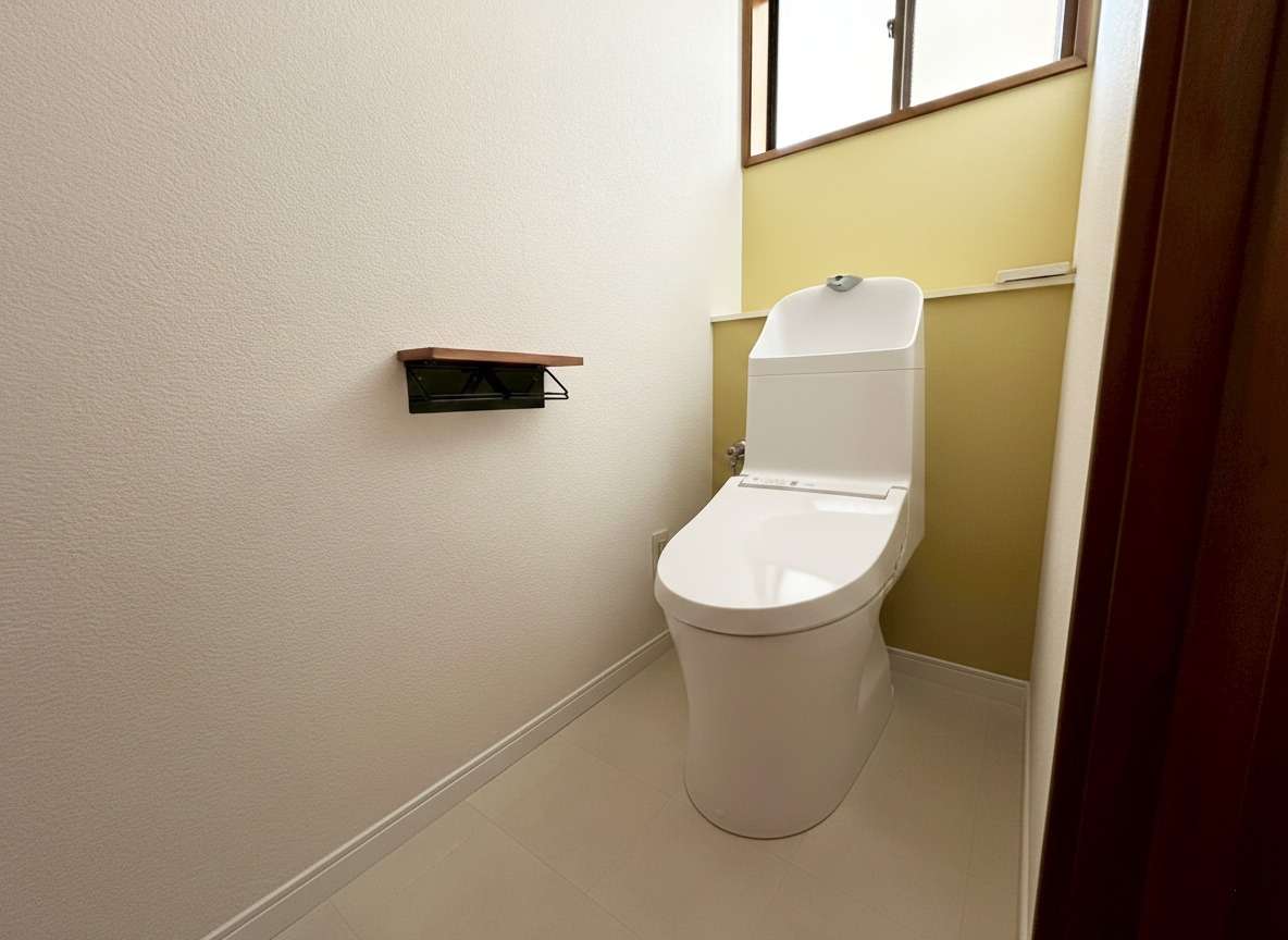 プライベート空間: トイレにはイエローやオレンジといった暖色系のアクセントカラーを採用。狭い空間だからこそ楽しめる遊び心を取り入れました。