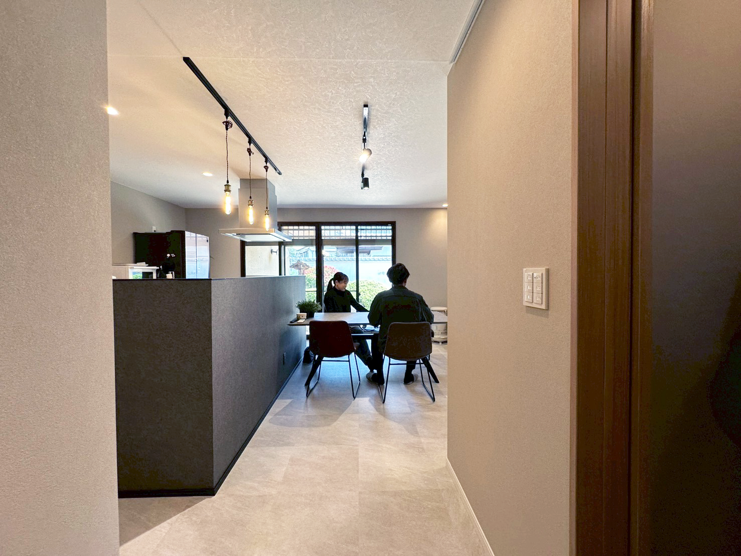 玄関に一歩足を踏み入れれば、そこには職人技が光る和の意匠。そこからリビングへ進むと洗練されたモダンな空間へ。このギャップこそが、ライフスタイルが提案するリノベーションの醍醐味です。