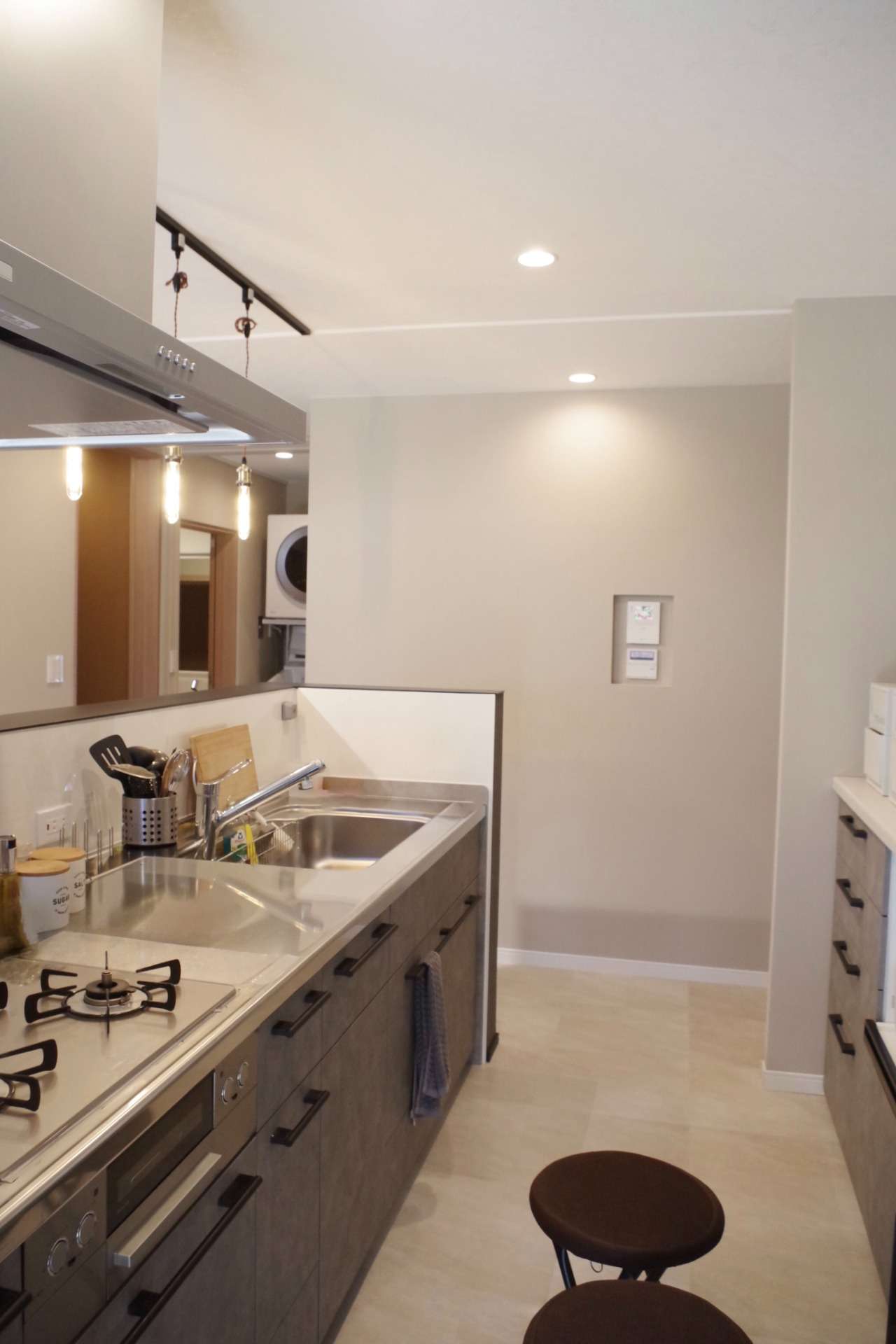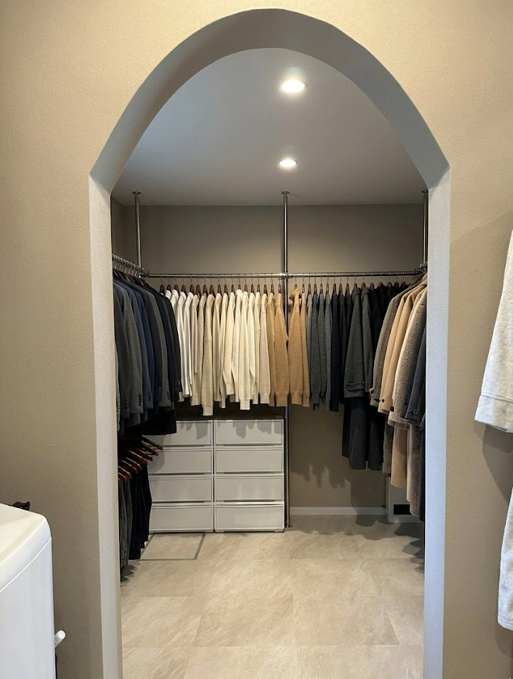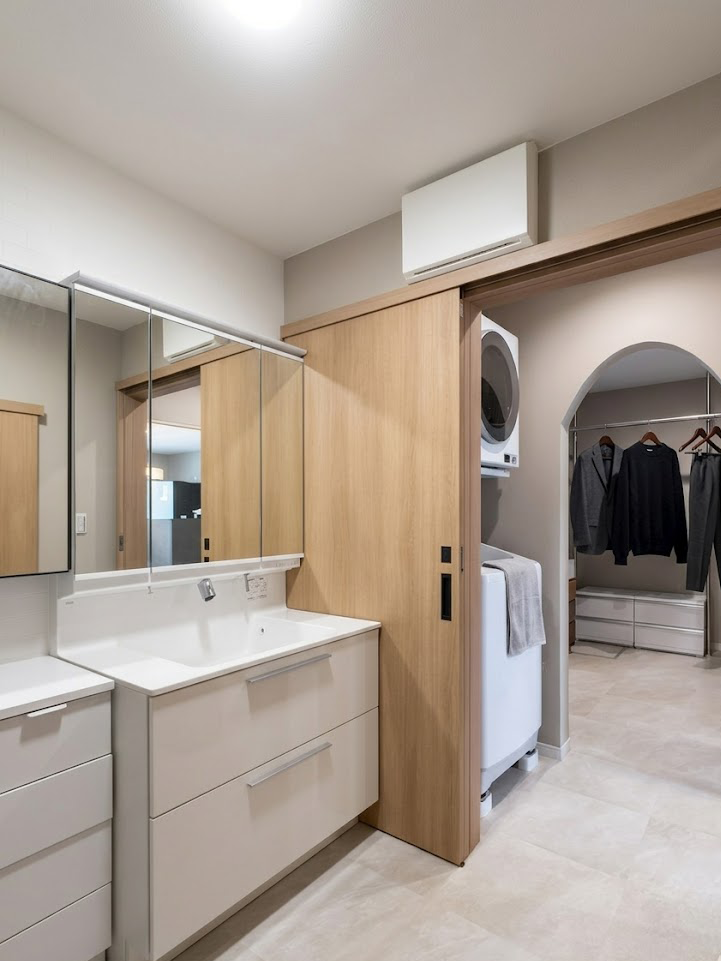 デザインだけでなく、日々の使い勝手にも妥協はありません。 キッチン横からそのままランドリースペースへ。そこには人気のガス乾燥機「乾太くん」を完備しました。 「料理の合間に洗濯を済ませ、最短距離で片付ける。」 そんな家事ラク動線が、家族と過ごすゆとりの時間を生み出します。