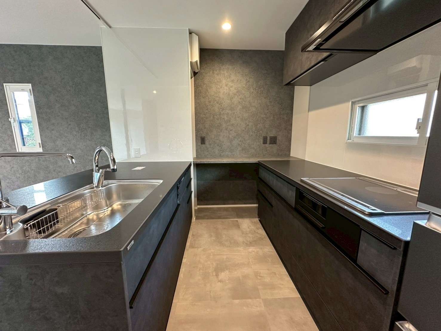 元は別の場所にあったキッチンを移設。開放的なキッチンに変身。Ⅱ列型キッチンを採用することで家族でキッチンに立つことも楽しくなった。