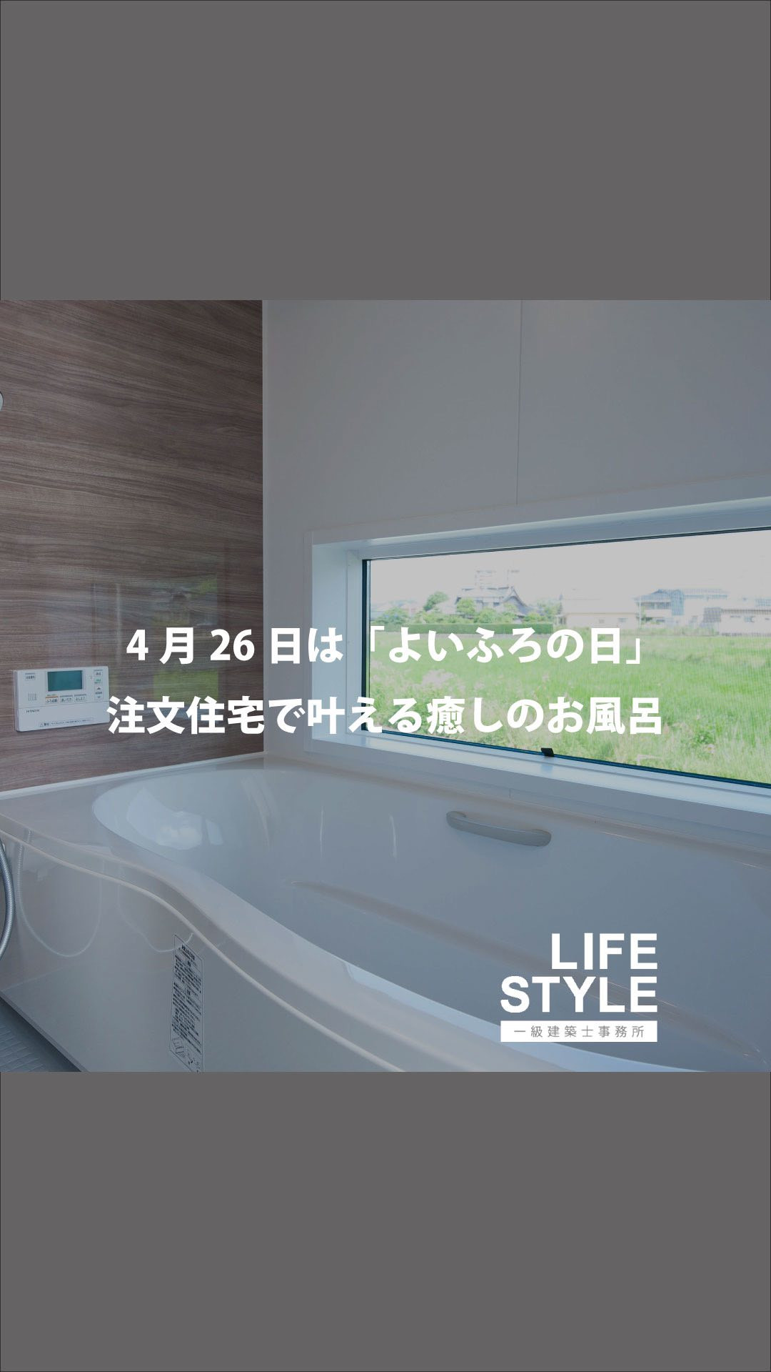 4.26は#よい風呂の日 4.26は#よい風呂の日1日の疲れを洗い流し、心身ともにリラックスできるお風呂は住まいの中でも特に癒しの空間であって欲しいもの…🛁注文住宅なら「ゆったり足を伸ばせるお風呂」「景色を眺めながら入浴で…